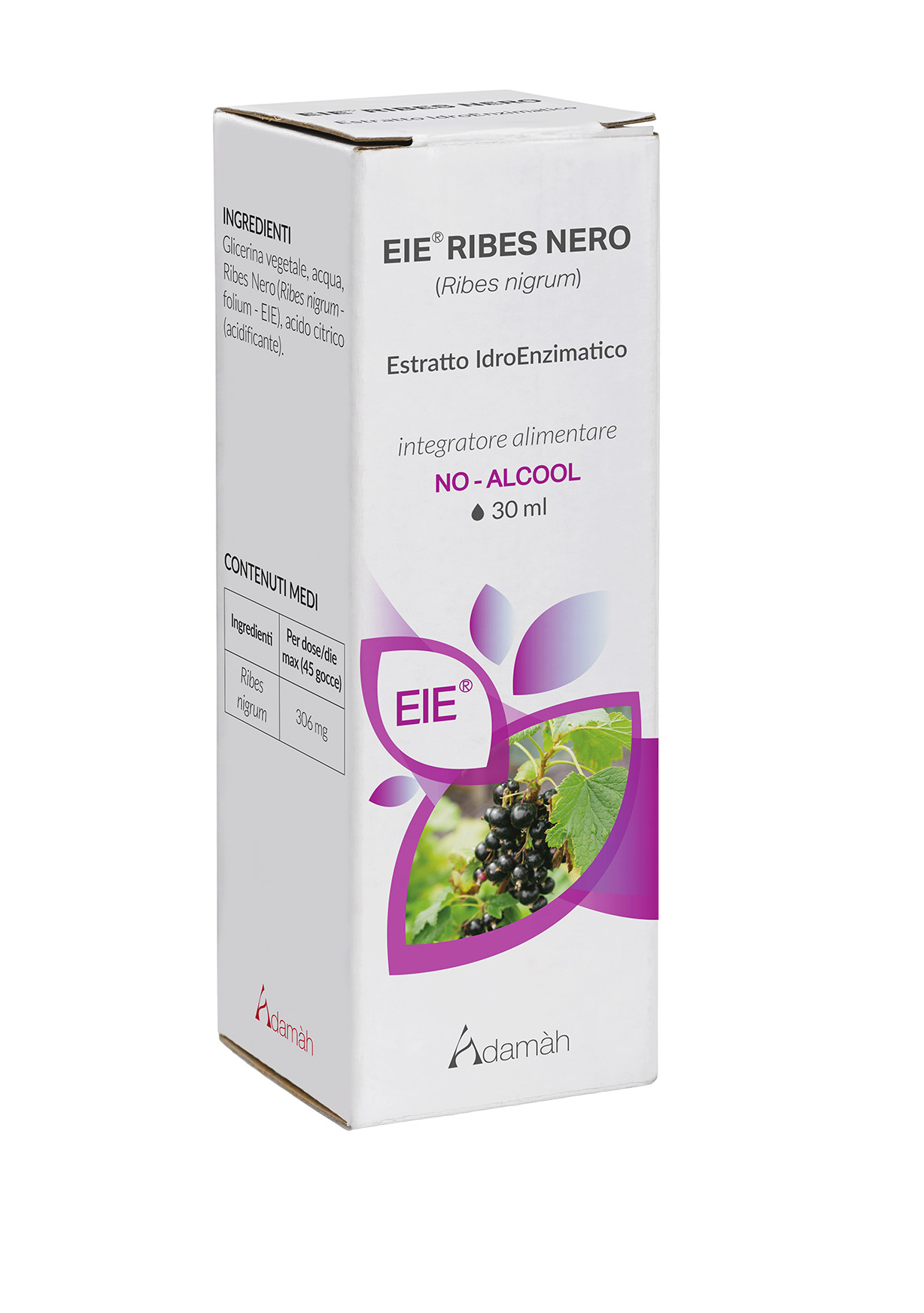 Glicerina vegetale, acqua, Ribes Nero (Ribes nigrum – foglie – EIE), acido citrico (acidificante).